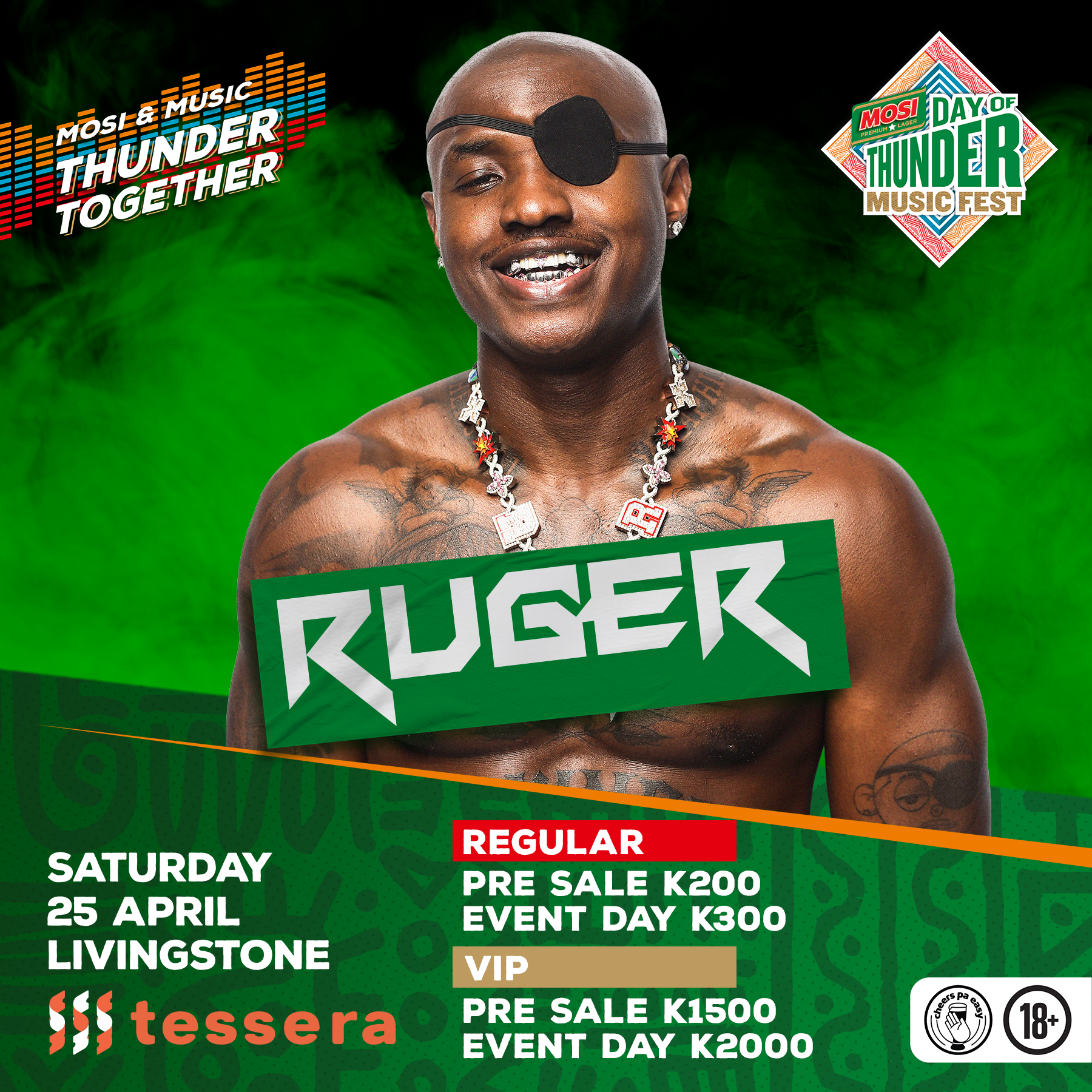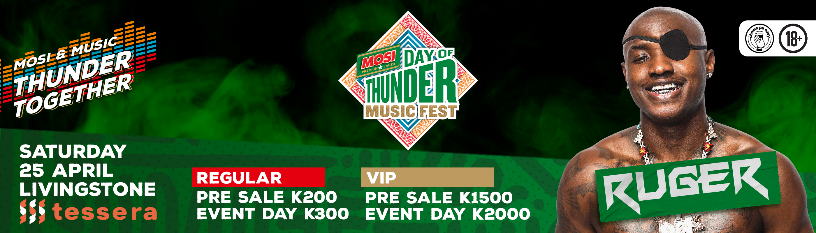 Join us on Saturday 25th April at Busiku Grounds for a day packed with incredible music, high energy, and unforgettable vibes. With two stages and a lineup featuring Zambia’s hottest talent alongside Nigerian superstar Ruger, this is where the thunder happens.